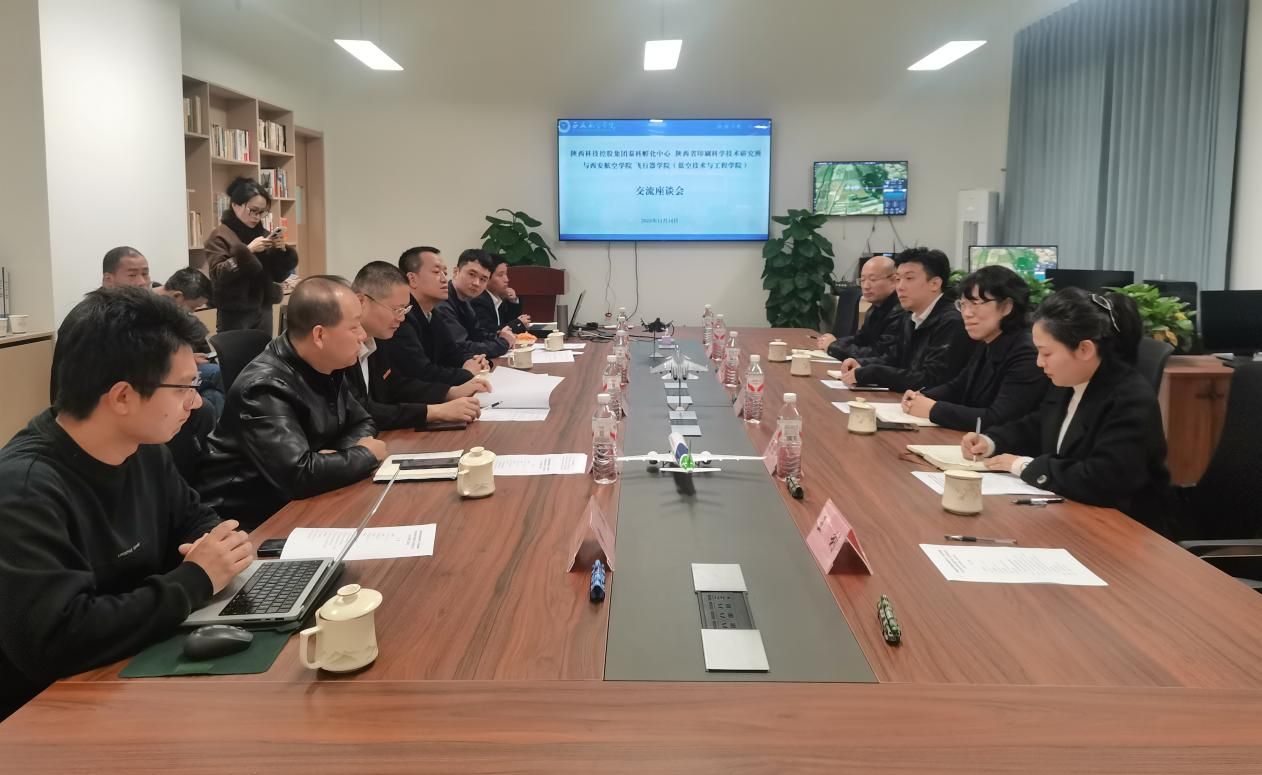 2025年11月14日上午,陕西科技控股集团秦科孵化中心主任李晓玲、陕西省印刷科学技术研究所副所长南余慧及集团相关业务骨干李俊锋、彭铂、王利等一行人莅临我院,就共探低空经济协同发展、校企合作在阎良校区民航2号楼2214进行了座谈交流。我院院长董彦非、党总支书记刘建强、继续教育学院院长苗海峰、空港新城管委会综合保税园区发展中心招商经理靳世佳、无人驾驶航空器系统工程专业负责人李继广、实验中心教师申洋参加了座谈交流。