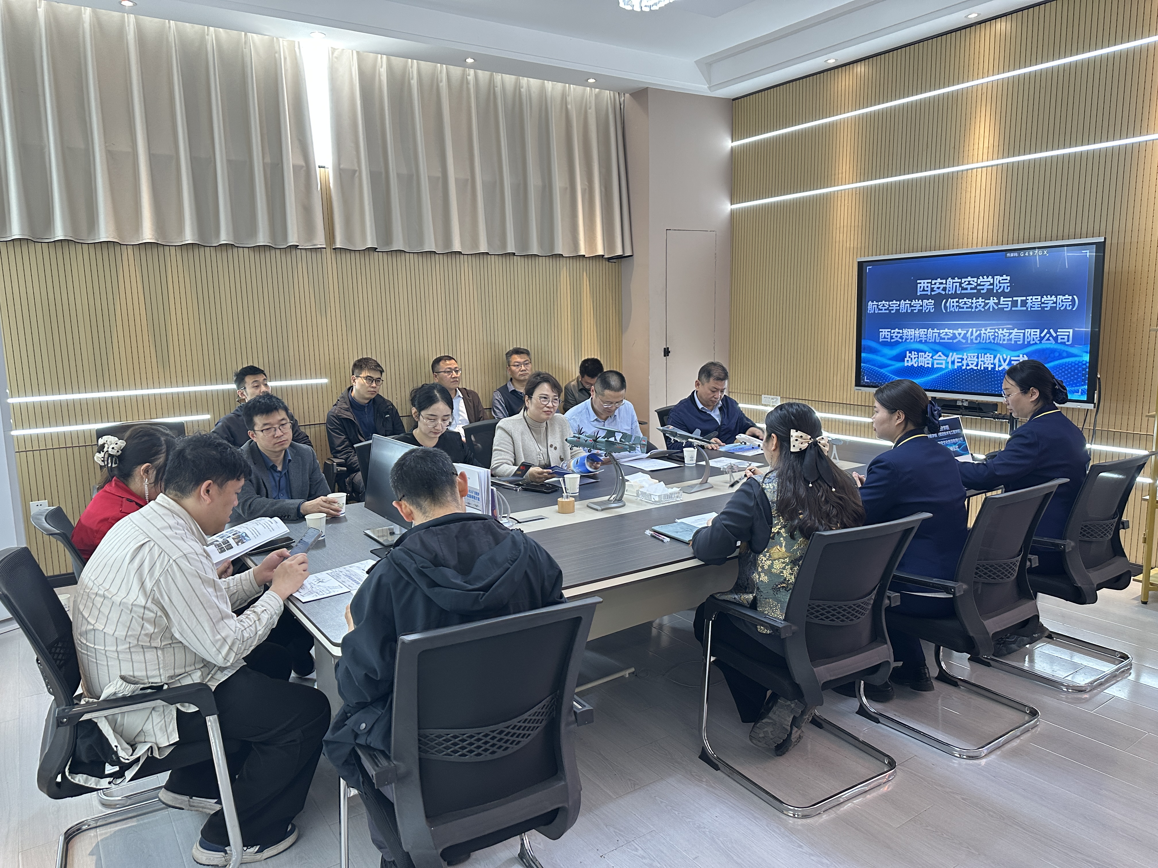 双方在会议室举行校企合作签约及授牌仪式。董彦非院长、孙茉莉书记围绕协同育人、实践能力培养及党建共建进行了交流,表示学院将充分发挥学科专业优势,推动党建与业务深度融合,在航空科普实践基地建设、实践教学、科研合作和人才联合培养等方面深化合作,不断提升人才培养质量和实践育人水平。双方围绕航空文化实践平台建设、航空科普研学课程开发、特色赛事活动组织及党建共建等达成合作共识,现场签署合作协议并举行授牌仪式。