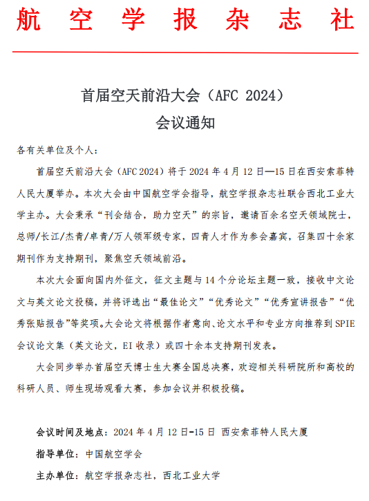 发布日期:2024-03-05    作者:航空学报杂志社     来源: 航空学报杂志社    点击: