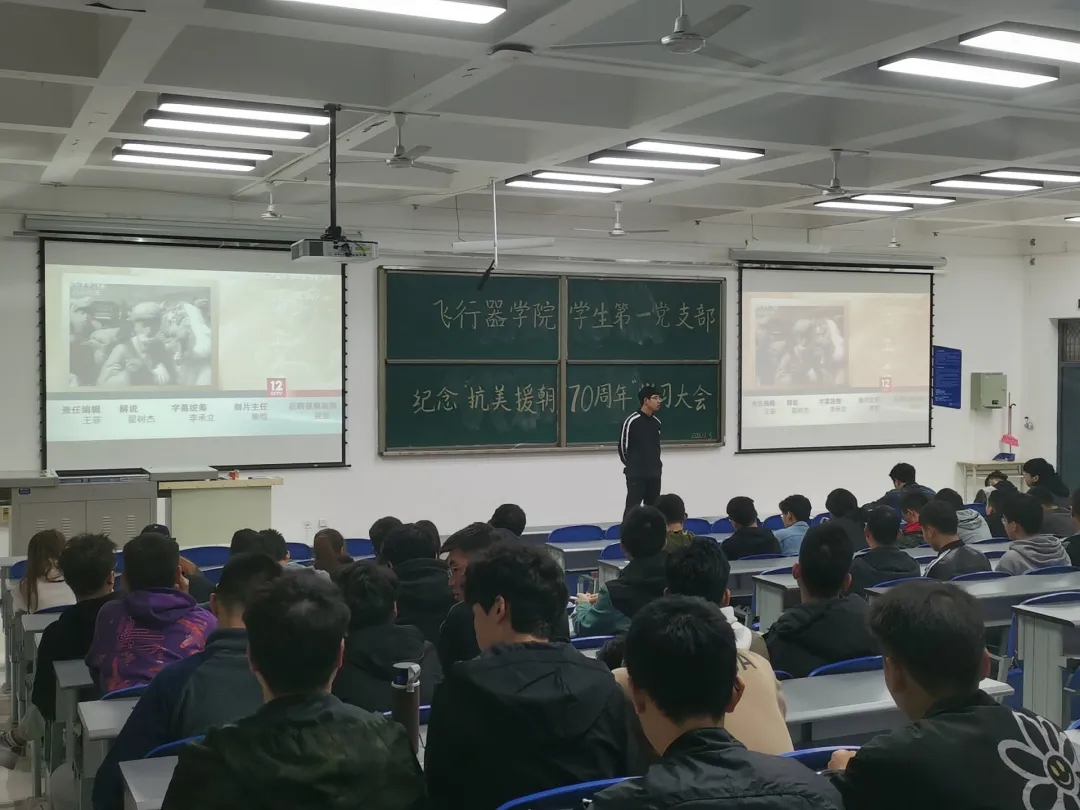 为进一步弘扬青年一代的爱国主义和伟大的抗美援朝精神,2020年11月5日晚8时,beat365体育官方网站学生第一党支部在第三阶梯教室组织开展了以纪念“中国人民志愿军抗美援朝出国作战70周年”为主题的党日活动,活动由党支部张学文同志主持,党支部全体学生党员参加了本次活动。