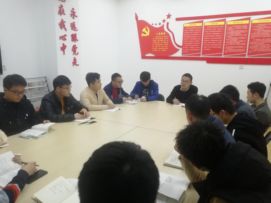 11月12日21点30,我院学生第一党支部在党团活动室召开“不忘初心、牢记使命”主题教育学习交流会。支部宣传委员李亮同与会党员一同交流了学习心得体会。