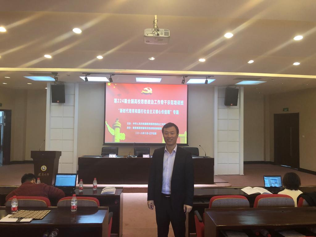 10月12日-15日,我院学生管理科科长杜长龙被学校推荐参加第224期全国高校思想政治工作骨干培训班,该培训班有教育部思想政治工作司主办,教育部高校辅导员培训和研修基地(辽宁大学)承办,来自全国近百所高校112人参加了此次培训。
