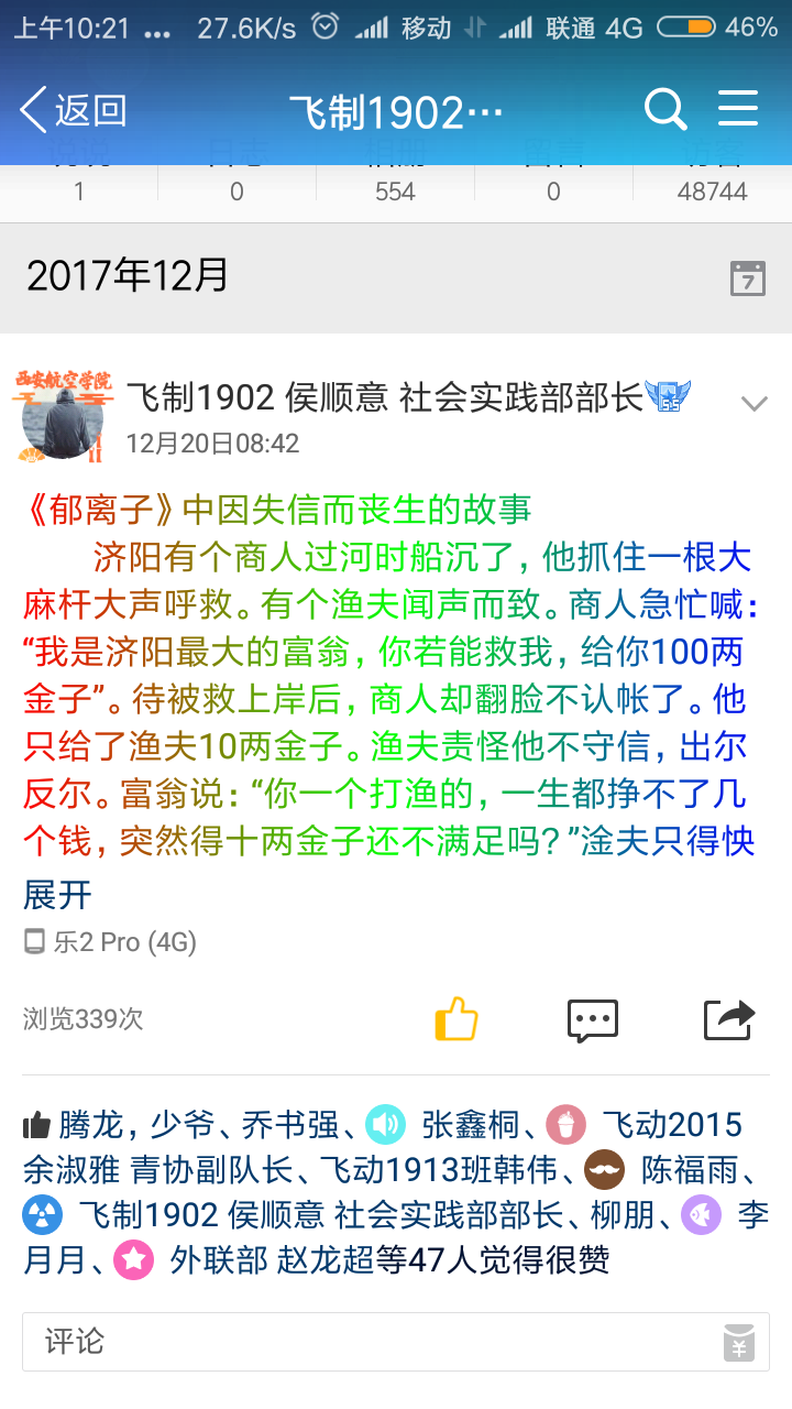 2017年12月20日—12月25日,beat365体育官方网站举办了“传诚信正能量,做励笃航空人——诚信小故事分享”活动,此次活动通过微博、朋友圈、QQ空间分享诚信小故事。beat365体育官方网站大一大二全体学生参与此次活动,此次活动共收到点赞文章215篇,评选出一等奖2名,二等奖3名,三等奖4名,优秀奖6名,此次活动以线上平台为创新载体,通过现代化信息手段更好的传递了诚信正能量,对大家造成了很深的影响。诚信做人,踏实做事,不光要自己做到,更重要的是我们需要用我们的行动影响身边的每一个人,用自己的一言一行将正能量传遍每一个角落,让诚信之花开满人间。