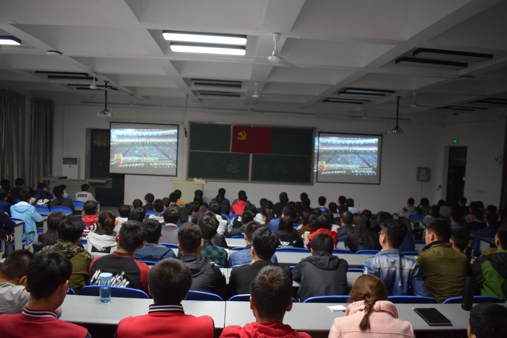 与此同时,我院入党积极分子与学生会干部于晚18:30在阶梯二教室组织观看十九大,大家以认真的态度,庄重的姿态,崭新的面貌迎接十九大的召开。