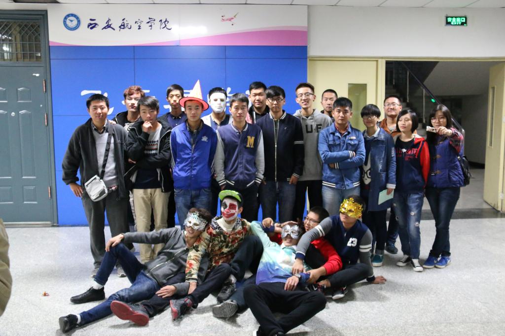我校beat365体育官方网站学生会为丰富学生们的课余活动,在10月31日晚七点举行了万圣节化妆游行活动。同学们都对此次活动抱有极大的兴趣和热情,精心妆扮。活动开始,为了活跃气氛,学生会在公寓十字处,进行了第一个小游戏“一二三,木头人”。虽然当天的气温很低,但是同学们的热情却很高涨,全场都洋溢着欢乐的气氛。
