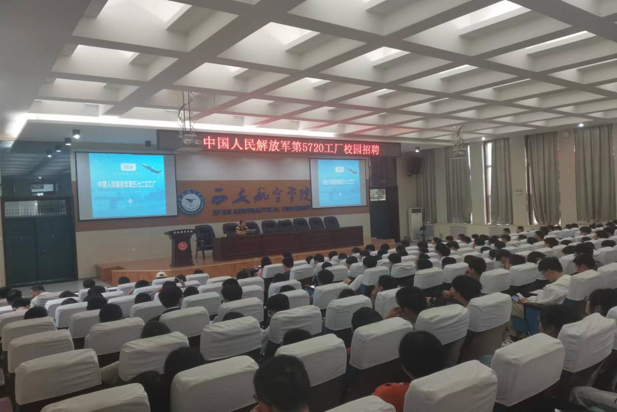 此次宣讲活动分为宣传介绍、提问应答二个环节。首先通过播放宣传片使学生们大致了解了中国人民解放军第5720工厂。其次介绍了中国人民解放军第5720工厂的工资待遇、个人发展和企业文化等。