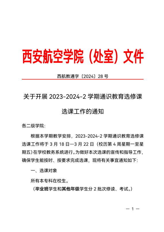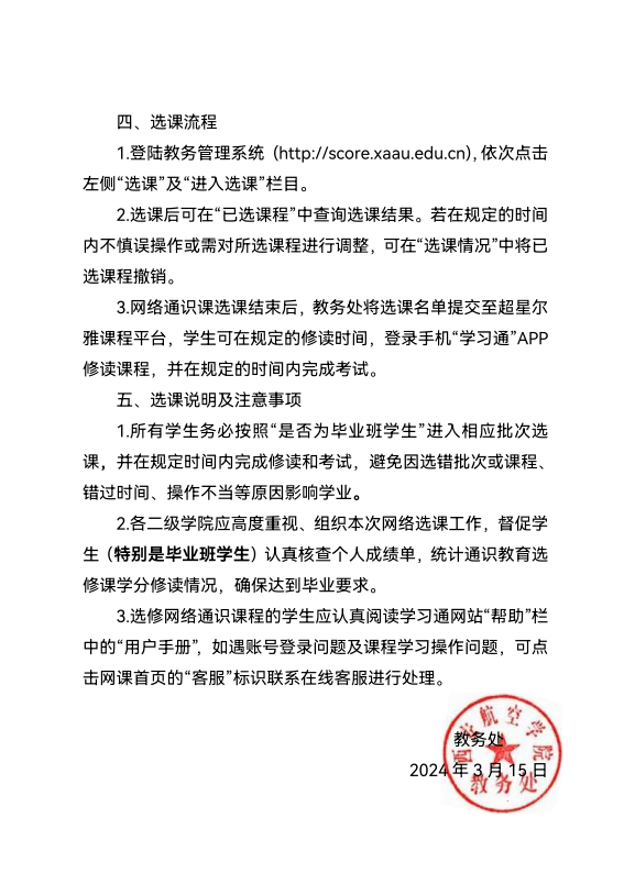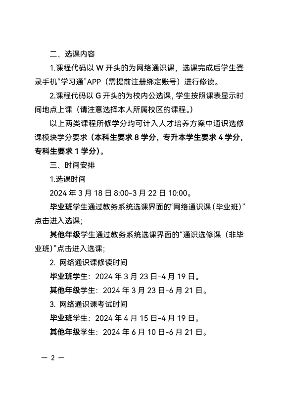 关于开展2023-2024-2学期通识教育选修课选课工作的通知