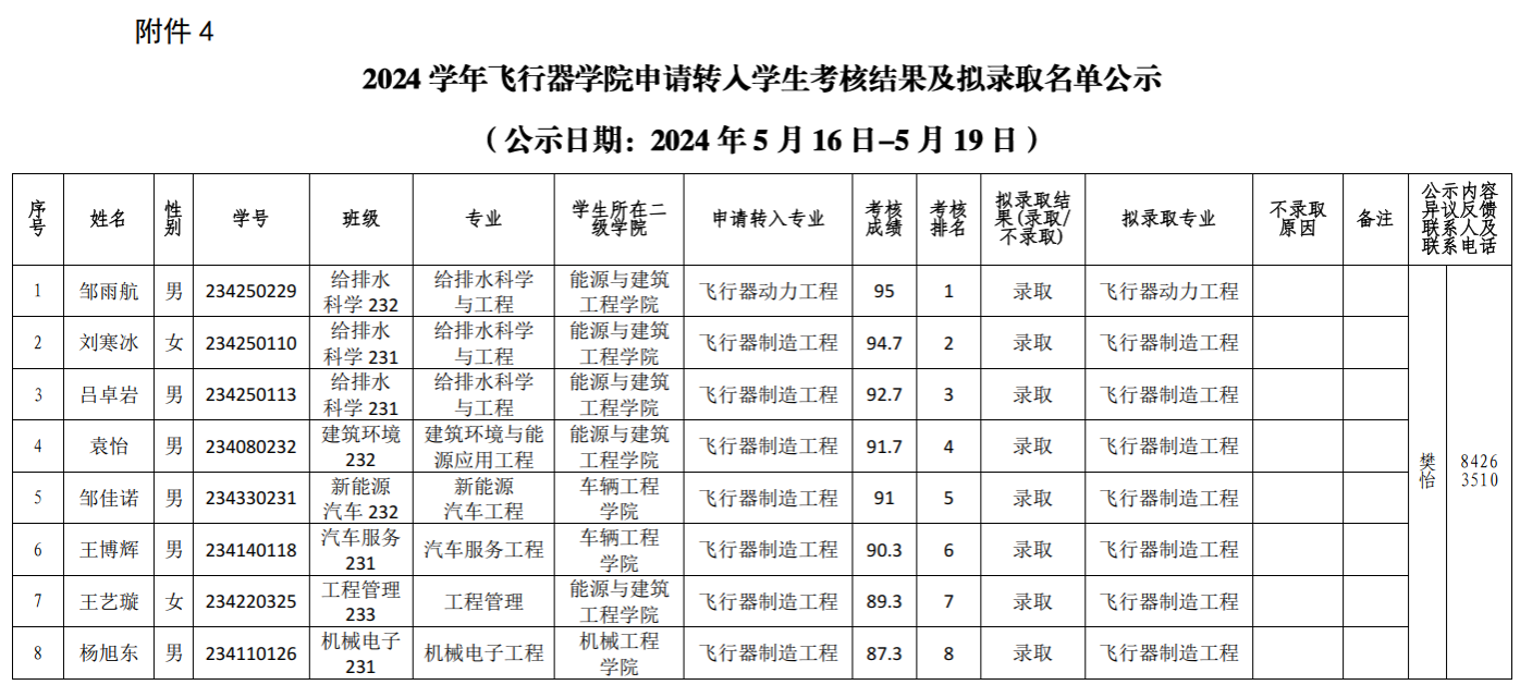 2024学年beat365体育官方网站申请转入学生考核结果及拟录取名单公示